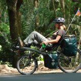 Liegeräder – ob mit zwei oder drei Rädern – sind ideale Reisevehikel, denn sie bieten eine entspannte Sitzposition und einen komfortablen Rundumblick. Durch ihren tiefen Schwerpunkt variiert die Fahrdynamik mit viel Gepäck nicht so stark vom unbeladenen Zustand wie beim herkömmlichen Fahrrad. „Die tiefe Position gewinnt auch in Sachen Luftwiderstand gegenüber dem aufrechten Fahren – und selbst das Gepäck ist aerodynamisch optimal hinter der Sitzlehne positioniert“, erklärt Tom Richter.