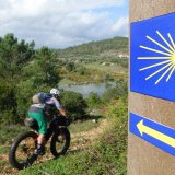 Walter Lauter: Wir sind in Lissabon gestartet. Ich wusste, es gibt zwei Pilgerwege von Lissabon nach Santiago de Compostela. Einen, der etwa zehn bis dreißig Kilometer im Landesinneren liegt, und einen direkter an der Atlantikküste entlang. Wir haben letztlich beide kombiniert und sind ein paar Tage dem inländischen und ein paar Tage dem Jakobsweg direkt an der Atlantikküste lang gefolgt. Das Geläuf war sehr vielfältig. Natürlich Asphalt, Kopfsteinpflaster, Schotterwege, Waldwege, Singletrails. Dadurch, dass es da auch ein paar Tage lang geregnet hat, waren manche Trails und Feldwege sehr matschig, teils sogar geflutet. An der Atlantikküste radelten wir natürlich viele Kilometer im weichen und auch im nassen Sand. Über alles gesehen, war der Pilger mit seinen 4,8 Zoll breiten Reifen ideal.