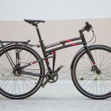 Dass ein Faltrad nicht notwendig kleine Räder haben muss, beweist Montague mit dem „Allston“ (2.299 Euro). Auf 28-Zoll-Laufrädern rollt der Faltriese daher und da der Faltmechanismus ohne Trennschnitt im Rahmen auskommt, lässt das Rad auf den ersten Blick nicht unbedingt vermuten, wie klein es sich machen kann. Als technische Finessen bringt das Allston einen sauberen Carbonriemen-Antrieb von Gates und einen separat erhältlichen Gepäckträger mit, der sich um 180 Grad herunterklappen lässt und dann als Ständer für das Rad dient. (zum Faktenblatt)