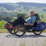 Ausgesprochen bequem sitzt man, wenn man liegt, so wie auf dem „Scorpion fx“ von HP Velotechnik (ab 3.390 Euro, in der mit Motor getesteten Ausstattung 5.980 Euro): „Wer erst einmal Platz genommen hat auf dem Scorpion fx, will nicht mehr so schnell aufstehen. Das Trike macht Spaß und ist dazu noch komfortabel“, schreibt die Elektrorad 01/16, die mit der Note „sehr gut“ eine Empfehlung abgibt – die einzige in der Kategorie Sonderräder. Das faltbare Liegedreirad kommt 2016 mit einem laut Hersteller bei gleichem Gewicht um 17 Prozent steiferen Rahmen, womit auch die mögliche Zuladung steigt. Dafür sorgt zudem ein neuer Gepäckträger, der nun bis zu vier große Ortlieb-Taschen und 50 Kilogramm Last aufnimmt. Doch nicht nur „mehr Reiserad“, sondern auch „mehr Fahrspaß“ bringe die neue Modellgeneration, urteilt die Redaktion der Radtouren in Ausgabe 05/16 nach einem Test auf der Eurobike. Dafür sorge etwa ein höheres Tretlager. „Überhaupt wirkte das Scorpion fx auf der Testrunde am Bodensee ausgesprochen agil und fahrstabil und zog sicher durch die Kurve“, lobt der Redakteur.