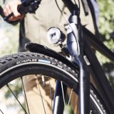 Damit der gewollte Umweg eine bequeme Fahrt bleibt, hat Sattelspezialist Selle Royal aus Italien seine Gel-Sattelreihe „Lookin“ überarbeitet – das typische „Fenster“ in der Sitzfläche bleibt natürlich. Nun gibt es vier Modelle für drei Sitzpositionen und je 64,90 Euro. Für Immer-Radler hat Reifenhersteller Schwalbe den neuen Ganzjahresreifen „Marathon GT365“ (drei Größen, je 39,90 Euro) mit Lamellenprofil im Angebot, der auch bei Schnee und Nässe optimale Traktion bieten soll. Ein saisonaler Reifenwechsel ist nicht mehr nötig. Eine extra Radbrille im Alltag erspart der neue Helm „Hyban +“ (104,95 Euro) von Abus – denn er ist mit einem Klappvisier ausgestattet, das Fahrtwind und alle Wetter aus dem Gesicht fernhält. Überhaupt lässt sich ein Trend zum Mehrfachschutz feststellen. Outdoor-Ausrüster Vaude beispielsweise erweitert seine „Luminum“-Reihe stark reflektierender Überkleidung, die rundum sichtbar macht und auch im Regen trocken hält (Überschuhe 32 Euro, Helmcover 18 Euro).
