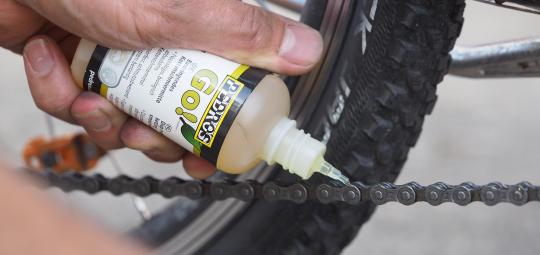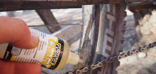Ein Fläschchen Kettenöl gehört auf jeden Fall ins Reisegepäck. Besonders Vielfahrer achten gern darauf, biologisch abbaubare Produkte zu wählen, wie etwa „Chainj“ von Pedro?s.