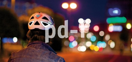 Reflektierendes Dekor sorgt dafür, dass der Radler unter diesem Helm bei Dunkelheit schneller wahrgenommen wird.
