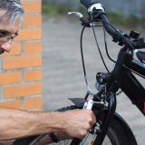 So nicht: Beim Ziehen der Bremse fällt auf, dass sie nachgestellt werden muss. „Der Bremshebel darf den Griff nicht berühren“, sagt Kai.