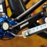„Einmal im Jahr muss man bei unserer Zentralgetriebeschaltung einen Ölwechsel durchführen. Das geht völlig problemlos in der heimischen Werkstatt. Im Set mit dem neuen Getriebeöl ist eine Spritze enthalten. Der Adapterschlauch wird an Spritze und Ölablassöffnung befestigt und durch Aufziehen der Spritze das Altöl schnell und sauber aus dem Getriebe gesaugt. Der Vorgang wird mit dem neuen Öl einfach in die andere Richtung wiederholt, bis die kompletten 60 Milliliter wieder im Getriebe sind. Durch die Spritze und den Adapter ist das ein sauberer und tropffreier Vorgang“, beschreibt Pinion-Servicetechniker André Effe. Das Altöl muss übrigens im Wertstoffhof entsorgt und nur das original Pinion-Getriebeöl verwendet werden.