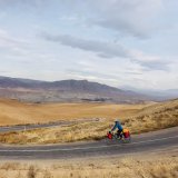 „Der Motor an meinem Flyer schnurrt problemlos und ich hatte immer noch keine Probleme mit dem Elektroantrieb. Meine einzigen Reparaturen waren viermal Bremsbeläge tauschen und ein Platten in Turkmenistan. Letzterer hatte es aber in sich. Die Tage sind jetzt ja kürzer und ich war bereits spät dran, um das nächstmögliche Hotel noch zu erreichen. Beim Reparieren ging mir dann auch noch die Luftpumpe kaputt. Zum Glück konnte ich zu einem Roadhouse zurückkehren, wo ich die Nacht zuvor mit anderen Radfahrern verbrachtet hatte. Dort konnte ich eine Pumpe ausleihen und meinen Platten flicken. Ansonsten fällt mir auf, dass die Akku-Leistung an kalten Tagen abnimmt. Durch die kurzen Tage muss ich bereits früh bei Kälte los und die Akkus sind noch nicht auf Betriebstemperatur. Eine schwere, lange Bergetappe wie im Sommer in den Alpen würde ich jetzt nicht mehr schaffen. Einmal war ich im High-Power-Modus unterwegs und das System hat sich plötzlich abgeschaltet. Bislang war ich aber noch nicht Temperaturen unter null Grad ausgesetzt. Das ändert sich jetzt: In den kommenden Tagen steht die Überquerung eines Höhenzuges mit über 2.700 Metern an. Ich habe mir deshalb bereits über Pedelec-Facebook-Gruppen ein paar Tipps von anderen E‑Bikern für das Fahren bei Kälte geholt. Ich bin gespannt, wie sich die Akkus verhalten.“