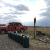 „Elektrizität gibt es überall und auch mein zweipoliger Stecker funktionierte bislang problemlos. Meistens lade ich über Nacht auf. Ab der zweiten Nacht Wildcamping muss ich während des Tages eine Ladepause einlegen. Als ich noch mit konventionellen Radfahrern und bei höheren Temperaturen unterwegs war, brauchte ich pro Tag bloß einen Akku. Derzeit sind es in der Regel eineinhalb, weil ich längere Distanzen fahre und weil es kühler ist. Ein lustiges Erlebnis hatte ich in Armenien, als ich an einer improvisierten Tankstelle mitten im Nirgendwo vorbeikam. Dort standen neben einem alten Lada diverse Benzinkanister und warteten auf durstige Motoren – und ich hätte in jedem Dorf auf der Strecke an die Steckdose gekonnt.“