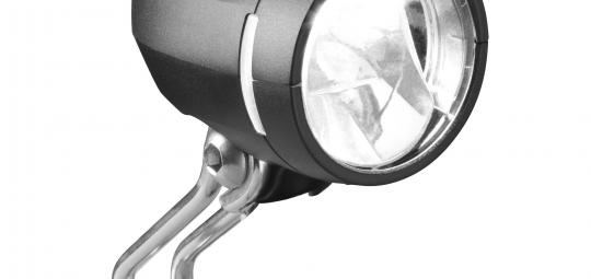 Der LED-Frontscheinwerfer „Myc“ von Busch & Müller leuchtet die Fahrbahn mit 50 Lux aus (mindestens 10 sind von der StVZO vorgeschrieben) und ist für den Dynamobetrieb gedacht.