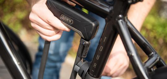 Zusätzliche Sicherheit ist dennoch wichtig und ein zweites Schloss absolut sinnvoll. Es gibt bei einigen Rahmenschlössern (z. B. „Pro Shield“ von Abus; ab 84,95 Euro) die Möglichkeit, Ketten oder Kabel mit dem Rahmenschloss zu verbinden, um ein Anschließen zu ermöglichen. Für den Transport der Kette bietet Abus eine passende Rahmentasche an.
