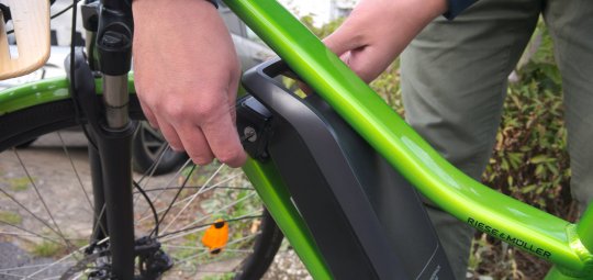 Der wesentliche Vorteil von Rahmenschlössern ist, dass das Schloss immer am Rad mit dabei ist. Der Nachteil: Man kann das Rad nicht anschließen und es kann trotz Sicherung einfach davongetragen werden. Allerdings erfahren Rahmenschlösser durch E‑Bikes (hier ein „Roadster Mixte“ von Riese & Müller, ab 3.299 Euro) gerade eine Renaissance: Durch das höhere Radgewicht wird ein Wegtragen im wahrsten Sinne des Wortes schwerer.