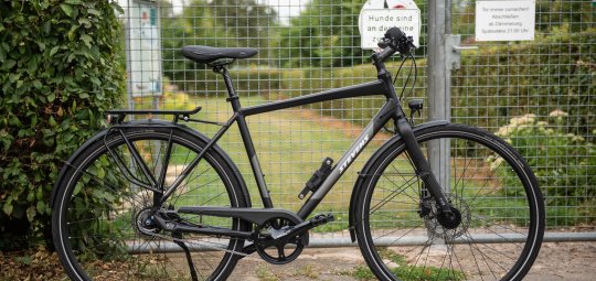 E‑Bikes (hier ein „Yucatan 8“ von Winora, 1.999 Euro) sind teurer als vergleichbare Räder für die Stadt ohne Motor. Deshalb brauchen sie auch einen besonderen Schutz. Bügelschlösser (z. B. das „Granit XPlus 540“ von Abus, mit Halterung ab 119,95 Euro) bieten eine maximale Sicherheitsstufe und werden deshalb von E‑Bikern gerne genommen. Für die Befestigung während der Fahrt gibt es spezielle Halterungen.