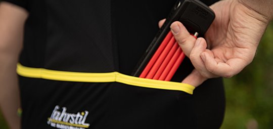 Alternativ ist das Schloss so klein und kompakt, dass es auch in der Trikottasche Platz findet.