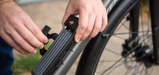 Für die kommende Saison bringt Abus mit dem „uGrip Bordo 5700“ (ab 64,95 Euro) ein neues Faltschlossmodell auf den Markt. Der Vorteil der Halterung: Das Schloss sitzt unten fest und wird oben einfach eingeclippt.