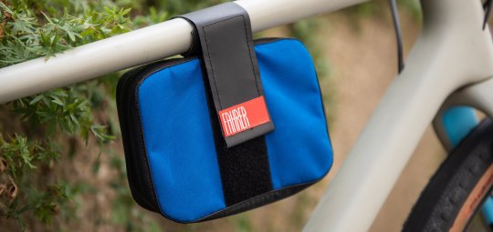Die Tasche wird einfach am Oberrohr mit Klettband fixiert. Ihr Vorteil: Neben einem Schloss finden auch noch weitere kleine Sachen wie Geld oder Schlüssel Platz.