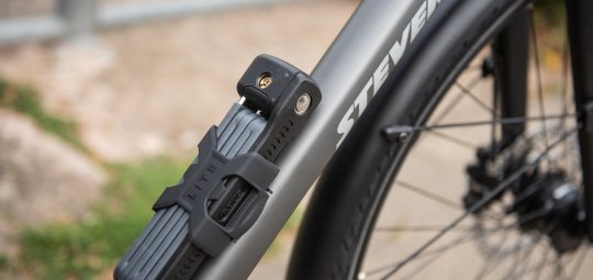 Gerade einmal 500 Gramm bringt das „Bordo Lite 6055/85“ (74,95 Euro) von Abus auf die Waage. Dabei bietet es mit 85 Zentimetern genügend Länge, um das Stadtfahrrad (z. B. ein „Courier Lite“ von Stevens; 1.099 Euro) an Abstellanlagen zu sichern.