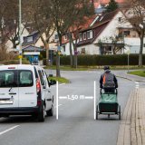 In der Straßenverkehrsordnung wird ein Mindest-Überholabstand verankert. Innerorts müssen Autofahrer in Zukunft einen Abstand von 1,5 Metern zum Radfahrer einhalten, außerorts beträgt er zwei Meter. Diese präzise Festlegung ist ein Novum. Bislang stand in der StVO, dass es sich um einen „ausreichenden Seitenabstand“ handeln müsse. Die Anpassung des Gesetzestextes folgt damit bestehenden Gerichtsurteilen, die diesen Mindestabstand bereits seit den 1980er-Jahren empfahlen (z. B. OLG Saarbrücken 3 U 141/79). Die Einhaltung des Seitenabstandes gilt übrigens auch, wenn man einen Radfahrer mit Anhänger überholt. Dann muss entsprechend mehr Platz einkalkuliert werden.
