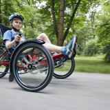 Es kann viele Gründe haben, warum das Kind nicht mit einem aufrechten Rad zurechtkommt. Damit es doch die Freude an der Bewegung selbst „erfahren“ kann, bieten sich dreirädrige Liegeräder an. Spezialist HP Velotechnik hat mit dem „Gekko fxs“ (UVP: ab 4.590 Euro) ein mitwachsendes Kinderrad im Angebot. Kinder und Jugendliche mit Körpergrößen von 115 bis 180 Zentimetern finden ihre passende Sitzposition – kippsicher und stabil. Welche Vorteile das bringt, erkennen auch die Krankenkassen an. So ist in vielen Fällen mittlerweile eine Kostenübernahme möglich.