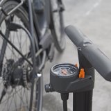 Die Reifen sind der Kontaktpunkt zum Boden und entscheidend für Vorankommen und Sicherheit. Deshalb als erstes: Luft kontrollieren! Denn Reifen verlieren Luft vom Rumstehen, das ist ganz normal. Das Prüfen mit dem Daumen hilft zwar für eine grobe Einschätzung – eine Standpumpe mit Manometer (z. B. „Airworx Plus 10.0“ von SKS Germany, 54,99 Euro) ermöglicht indes korrektes Ablesen des Drucks und einfachstes Aufpumpen. In welchem Druckbereich ein Reifen gefahren werden darf, steht auf der Reifenflanke. Die Angaben sollten unbedingt eingehalten werden! Eine neue, hochwertige Luftpumpe hat zudem den Vorteil, dass ihr Pumpenkopf das Aufpumpen unterschiedlicher Ventile ermöglicht und über Adapter für Bälle und Luftmatratzen verfügt.