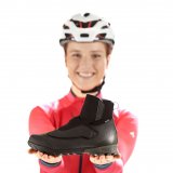 Wer nicht im Hänger mitfährt, sondern selber tritt, kennt das: Im Winter leiden besonders die Füße schnell unter der Kälte. Menschen, die oft an den Füßen frieren, sollten auf Funktionssocken und natürlich auf gute Schuhe achten. Speziell für das Radfahren im Winter soll etwa der „Minaki STX II“ (220,00 Euro) von Vaude dank Primaloft-Wattierung und wasserdichter Membran für trockene und warme Füße auch unterhalb des Gefrierpunkts sorgen.