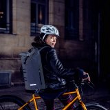 Wer zur Arbeit pendelt oder mit Gepäck radelt, kann die Aufmerksamkeit anderer Verkehrsteilnehmer zusätzlich mit reflektierenden Radtaschen auf sich ziehen. Der „Commuter-Daypack High Visibility“ (199,99 Euro) von Ortlieb etwa besteht komplett aus einem leuchtstarken Reflexgarn, sodass die ganze Tasche im Scheinwerferlicht strahlt.