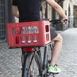 Wohin mit den Getränkekisten? Diese Frage stellen sich sicherlich viele. Abhilfe schafft eine Gepäckträgererweiterung wie die „Racky Baseplate“ von M‑Wave (17,90 Euro). Die Platte wird einfach auf den Gepäckträger geschnallt und vergrößert die Tragefläche auf 40 mal 40 Zentimeter. So lassen sich Getränkekiste oder Pizzakartons einfach nach Hause transportieren.