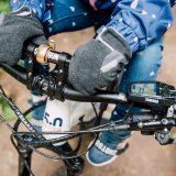 An einem sonnigen Nachmittag ist der große Tag gekommen. Da die Temperaturen schon herbstlich frisch sind, ist die richtige Kleidung ein Muss. Anders als ich wird sich meine Tochter während der Fahrt nicht bewegen und beim E‑Mountainbiken kühlt der Fahrtwind nicht nur bergab, sondern auch bergauf. Handschuhe, warme Hose und eine Mütze sind zwingend notwendig. Bevor wir losfahren, gibt es noch eine kurze technische Einweisung: Nicht auf dem Display und auf gar keinen Fall am Hebel der Dropper Post rumdrücken bzw. die Hände am besten einfach am Lenker lassen. Als Gag habe ich dafür eine Klingel am kleinen Lenker montiert. Damit kann meine Tochter andere Waldnutzer:innen vorausschauend warnen, dass wir kommen – unsere eigene Trail-Bell. Eine Idee, die auf sehr viel Begeisterung stößt. Fröhlich klingelnd starten wir unsere Tour in den Göttinger Stadtwald.