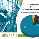 Der stationäre Fahrradfachhandel bleibt in Deutschland der erste Ansprechpartner beim Fahrradkauf. Fast Dreiviertel aller Käufe werden vor Ort getätigt, wobei der VDZ kritisch anmerkt, dass die Beratung aufgrund der teilweise angespannten Verfügbarkeit gelitten habe und es mehr eine „Verteilung der Ware“ an Endkund:innen war. Die Folgen der Corona-Maßnahmen und auch des E‑Bikes-Booms zeigen sich auch in der Struktur der Fahrradgeschäfte: Große Filialisten mit viel Verkaufsfläche haben in den letzten Jahren mehr Erfolg feiern können als die kleinen Fachhändler:innen um die Ecke. Die Großen können mit mehr Kapital arbeiten und auch höhere Investitionen in Werkstatt und Personal tätigen. Starkes Wachstum zeigt auch das Online-Geschäft, wohingegen der Verkauf in Baumärkten und Discountern rückläufig war, was für eine wachsende Wertschätzung für das Fahrrad spricht.