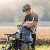 Wie viel passt eigentlich in eine Satteltasche und wie viele von den Taschen braucht es überhaupt? Bevor Radreisende sich in den Sattel schwingen, steht erstmal ein Probepacken und anschließend eine Probefahrt an. „Ein Rad fährt sich voll und vor allem falsch beladen anders als ohne Taschen. Deshalb muss man prüfen, ob das Gewicht gleichmäßig verteilt ist. Dafür eignen sich Proberunden auf einem Parkplatz oder auch bei leichtem Gefälle, um das Bremsverhalten zu üben“, rät Peter Wöstmann vom Taschenspezialisten Ortlieb, der gerne auch privat auf große Fahrradtour geht. Und was nicht in die Taschen passt, kann dann auch zuhause bleiben.