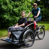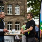 Die Cargobike-Road-Show ist allerdings nicht nur ein Test-Event, sondern hat auch einen politischen Hintergrund. Sie ist eine Einladung an die Städte, sich mit der Verkehrswende stärker zu beschäftigen. Deshalb nutzen diverse Politiker:innen die Bühne, um für moderne Verkehrskonzepte zu werben. In Göttingen kamen zusätzlich verschiedene Initiativen zu Wort, die Lastenräder in ihren Alltag integrieren, z. B. der örtliche Malteser-Hilfsdienst, der Menschen per Lastenrad zu Veranstaltungen oder Terminen fährt. Ich versuche mich auch einmal an so einem Gefährt zum Transport von größeren Personen, muss aber feststellen, dass das Fahren für mich äußerst gewöhnungsbedürftig ist. Dann lieber als Beifahrer chauffieren lassen.