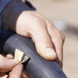 Fahrradbekleidung – wie zum Beispiel Regenjacken – kann bei einem Sturz einen Riss bekommen. Manche Hersteller, z. B. Vaude, raten dazu, den Riss oder das Loch mit einem Klebepatch zu überdecken. Dafür schneidet man den Patch entsprechend zu und klebt ihn auf die trockene Oberfläche. Tipp: Den Flicken am besten rund schneiden. So können sich keine Ecken lösen.