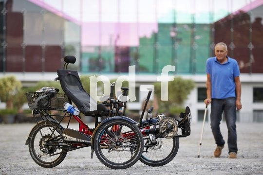 | Bildunterschrift: | Diverse Um- und Anbaumöglichkeiten machen das Liegedreirad zum idealen Mobilisierer für Menschen mit Handicap. |