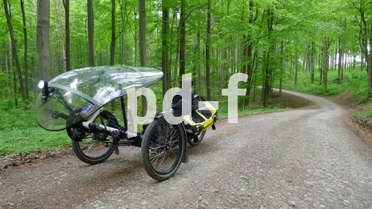 | Bildunterschrift: | Ein "Streamer" sorgt auf dem Liegedreirad für optimalen Wetterschutz. Ob auf der Reise oder beim Pendeln, so macht die Fahrt auch bei Nässe Spaß. |