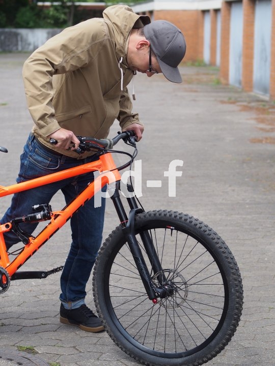 | Bildunterschrift: | Hinterbau und Gabel müssen bereits beim Draufsetzen leicht einfedern. Der sogenannte Negativfederweg kommt etwa bei Löchern im Trail zur Geltung. |