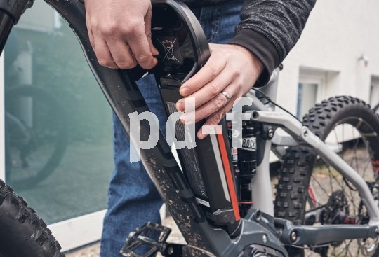 Bildunterschrift: Ein Akku kann zum Aufladen meist einfach aus dem Rahmen entnommen werden.