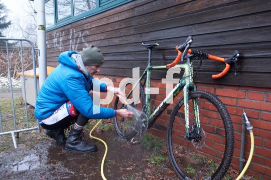 Bildunterschrift: Die Arbeit nach dem Vergnügen: Rad putzen.