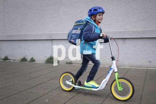 | Bildunterschrift: | Ein mit Luftreifen ausgestatteter Roller ist ein praktischer und sicherer Begleiter für den täglichen Weg zur Schule. |