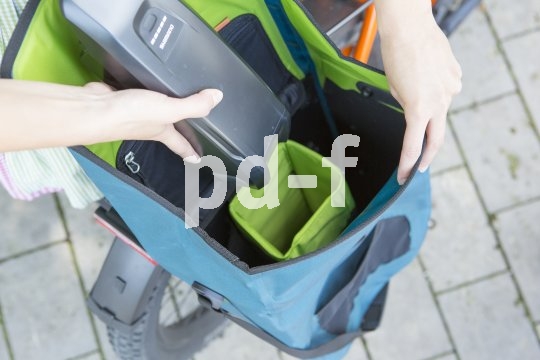 | Bildunterschrift: | Für Radreisende und Pendler interessant: Eine Radtasche mit speziellem Akku-Fach. |