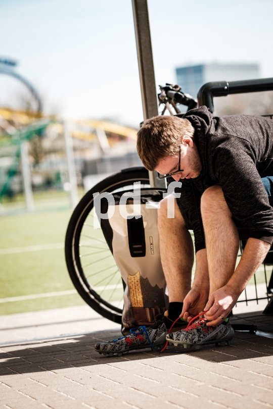 | Bildunterschrift: | In einem großen Rucksack lassen sich die wichtigsten Fußballutensilien verstauen und so mit dem Rad zum Training fahren. |