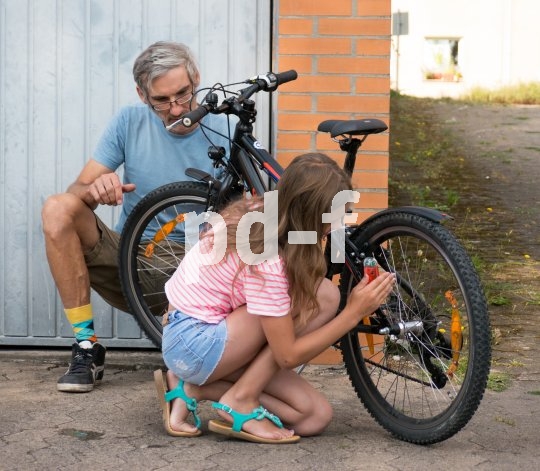 | Bildunterschrift: | Für einen Lichtcheck ist man am besten zu zweit: Einer bringt den Nabendynamo in Schwung, der andere kontrolliert die Funktion von Scheinwerfer und Rücklicht. |
