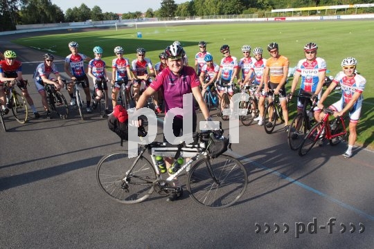 Bildunterschrift: Die Trainingsgruppe der Tuspo Weende bereitete Johannes Staudinger einen ordentlichen Empfang.