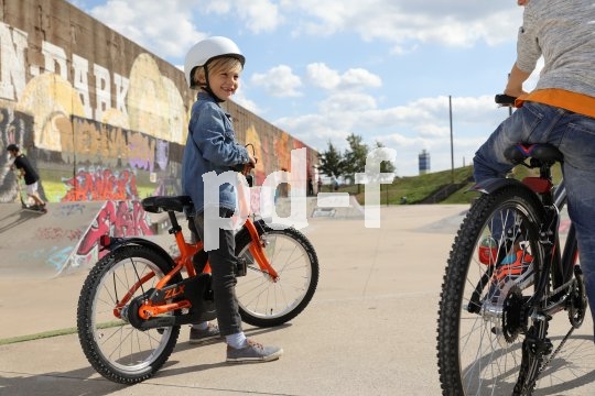 | Bildunterschrift: | Fahrrad passt, Helm passt, kein Straßenverkehr - so lässt sich das Radfahren spielnd lernen. Wenn auch noch andere Kinder dabei sind, macht es gleich noch mehr Spaß. |