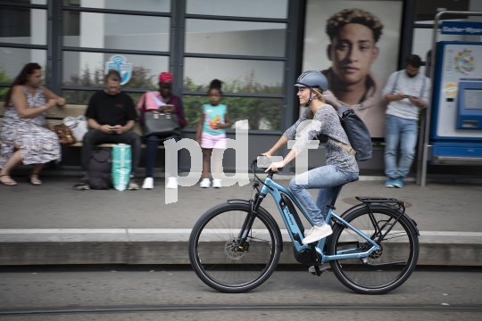 | Bildunterschrift: | Kompakte Elektrobikes bieten alles, was der Nutzer in der Stadt braucht: genug Power, gute Bremsen, maßvolles Gewicht, wenig Platzbedarf beim Abstellen. Dieses Modell der Firma Flyer nutzt einen wartungsfreien, sauberen Riemen für den Antrieb. |