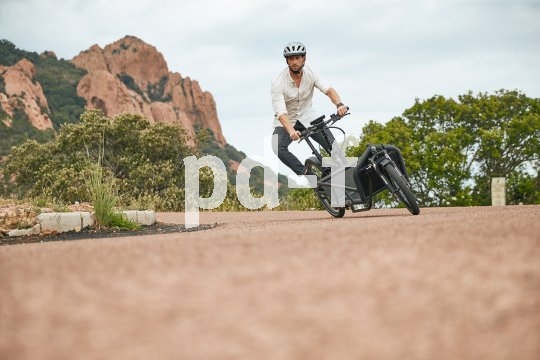 | Bildunterschrift: | Bei einer Ladeflächenlänge von 75 cm sollten sich Platzprobleme beim Beladen in Grenzen halten. Der Transport selbst wird durch Vollfederung und einen leistungsfähigen Bosch-Motor unterstützt (Modell Load 75 von Riese & Müller). |