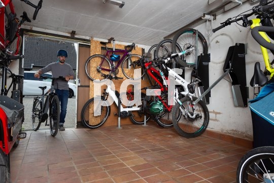 | Bildunterschrift: | Am besten lassen Fahrräder sich senkrecht an der Wand unterbringen. So bleibt viel Bewegungsfreiheit im Raum zum Ein- und Ausparken, Luftdruck checken und Kette ölen - wenn es sein muss. |