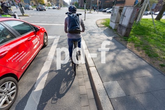 | Bildunterschrift: | Ja, Fahrräder dürfen Autos rechts überholen, etwa vor einer Ampel. Das gilt auch, wenn zwar kein Fahrradweg, aber ausreichend Platz vorhanden ist und sich der Fahrradfahrer entsprechend vorsichtig verhält. |