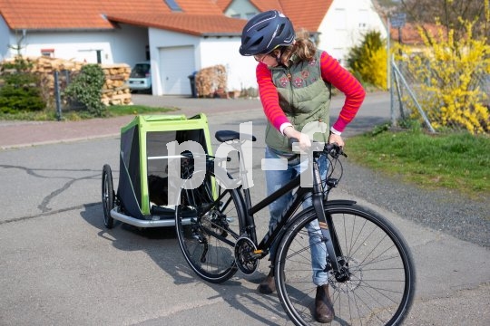 | Bildunterschrift: | Die ersten Runden mit Rad und Anhänger sollte man zu Fuß zurücklegen, damit der Kontakt zum Hund eng bleibt. Beruhigendes Zureden hält die Aufregung unter Kontrolle. |