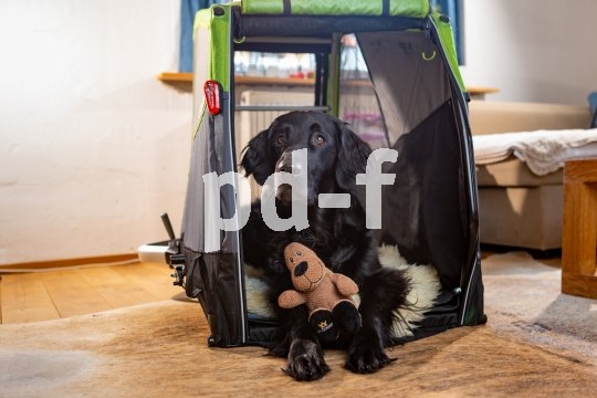 | Bildunterschrift: | Schritt 4: Anhänger als Liegeplatz. Hierzu werden die hintere und die Dachluke geschlossen. Das Ziel der Übung ist erreicht, wenn man auch die Zustiegsluke schließen kann, ohne dass der Hund gestresst oder ängstlich wirkt |