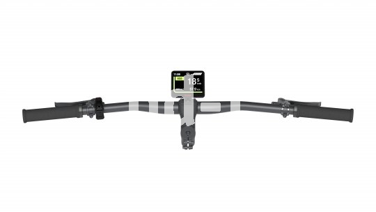 | Bildunterschrift: | Das Lenkerdisplay "Central View" von E-Bike-Motorenhersteller Brose kommt im Team an den Lenker: mittig ein großes, gut ablesbares Display mit allen verfügbaren Daten, am Griff eine kleine gut erreichbare Bedieneinheit. |