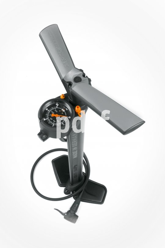 | Bildunterschrift: | Der richtige Luftdruck ist entscheidend für Grip und Haltbarkeit eines Reifens. Deshalb sind Standpumpen mit Manometer wie dieses Modell "Airworx" von SKS eine gute Wahl; sie garantieren unangestrengtes Pumpen und präzise Druckkontrolle. |