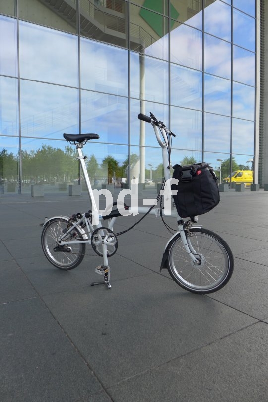 | Bildunterschrift: | Hersteller Fahrer Berlin bietet einen Rucksack speziell für Faltradfahrer an, der perfekt für die Fronthalterung am Brompton-Faltrad geschnitten ist. So bleiben beim Falten und Tragen die Hände frei, beim Fahren dagegen der Rücken. Als Tragehilfe gibt es zudem einen genau passenden Griff. |